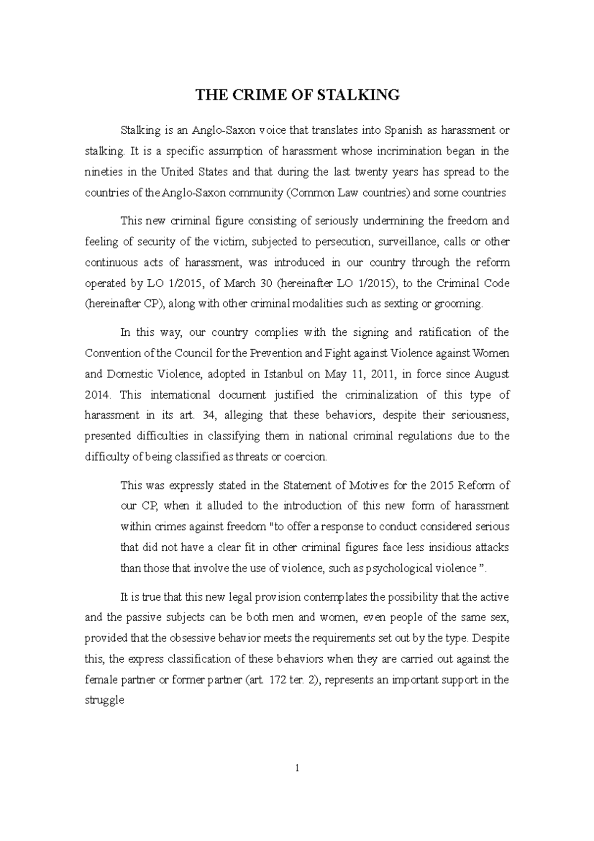 The Crime Of Stalking Grade 9 1 The Crime Of Stalking Stalking Is An Anglo Saxon Voice That Studocu